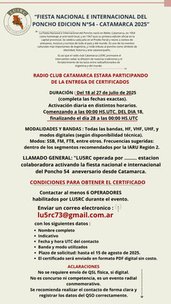 18 AL 28 FIESTA NACIONAL INTERNACIONAL DEL PONCHO (RADIO CLUB CATAMARCA)